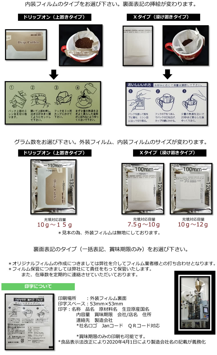| コーヒー原料 | お客様のご要望、ご予算に応じて、使用するコーヒー原料をご提案させていただきます。 お客様よりコーヒー原料の持ち込みも可能です。 |